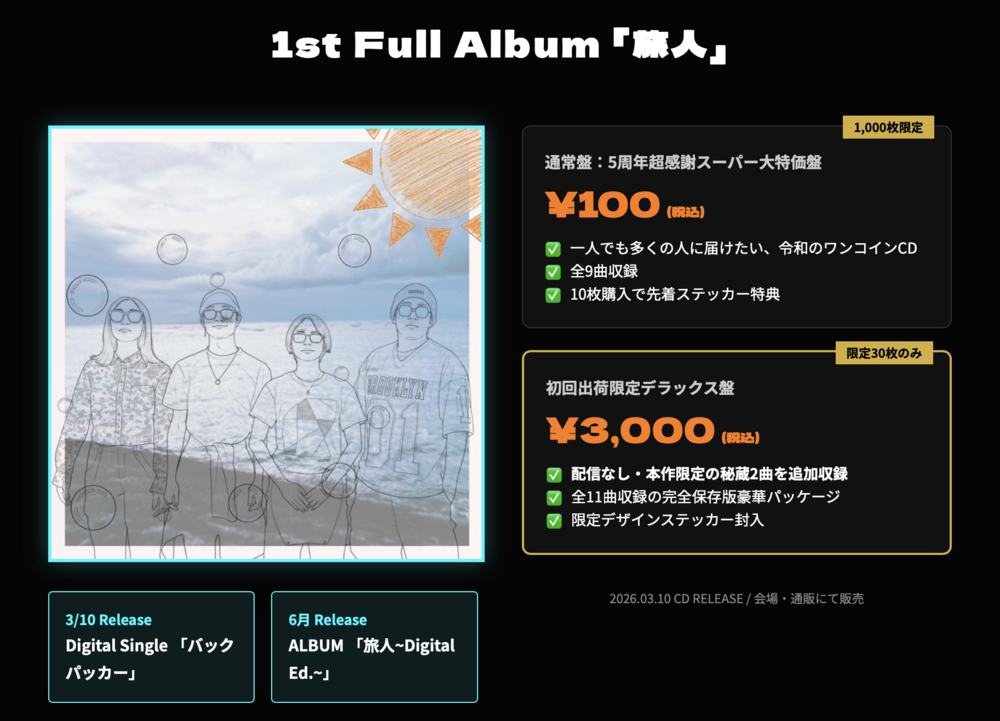 【Release】1st ALBUM 「旅人」リリース決定!!!!